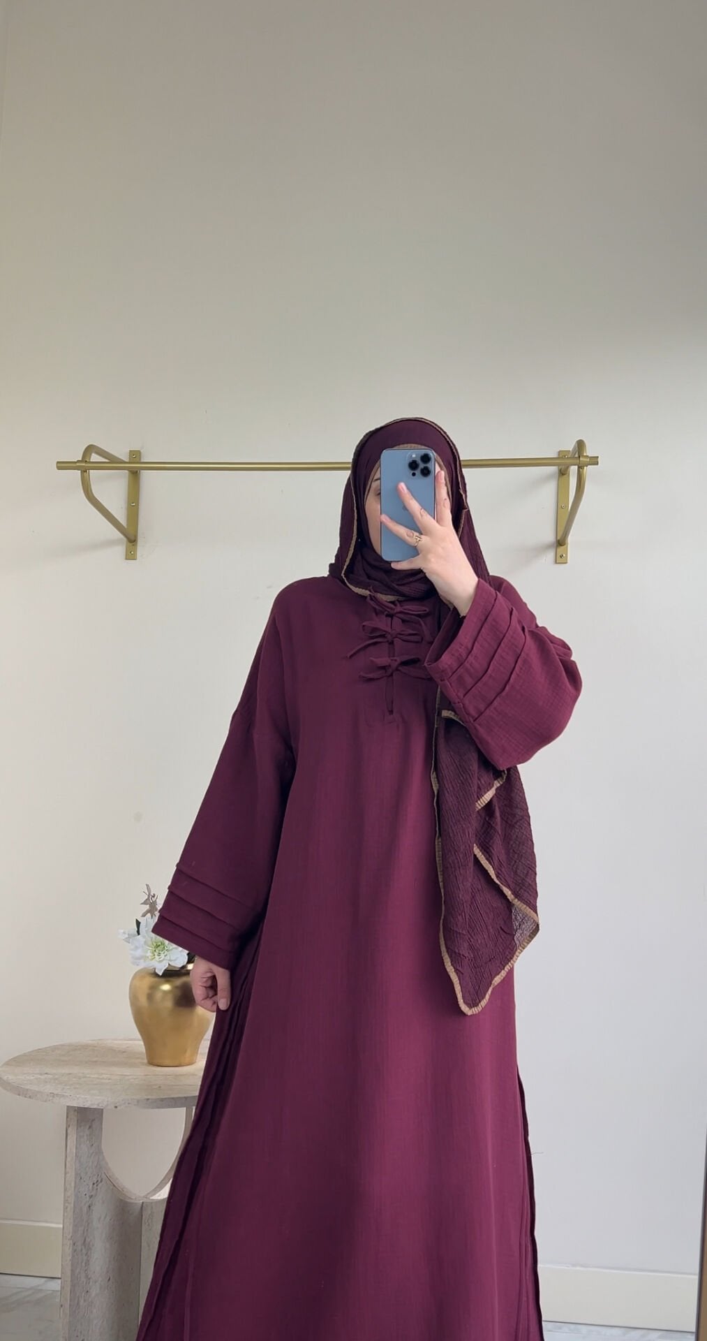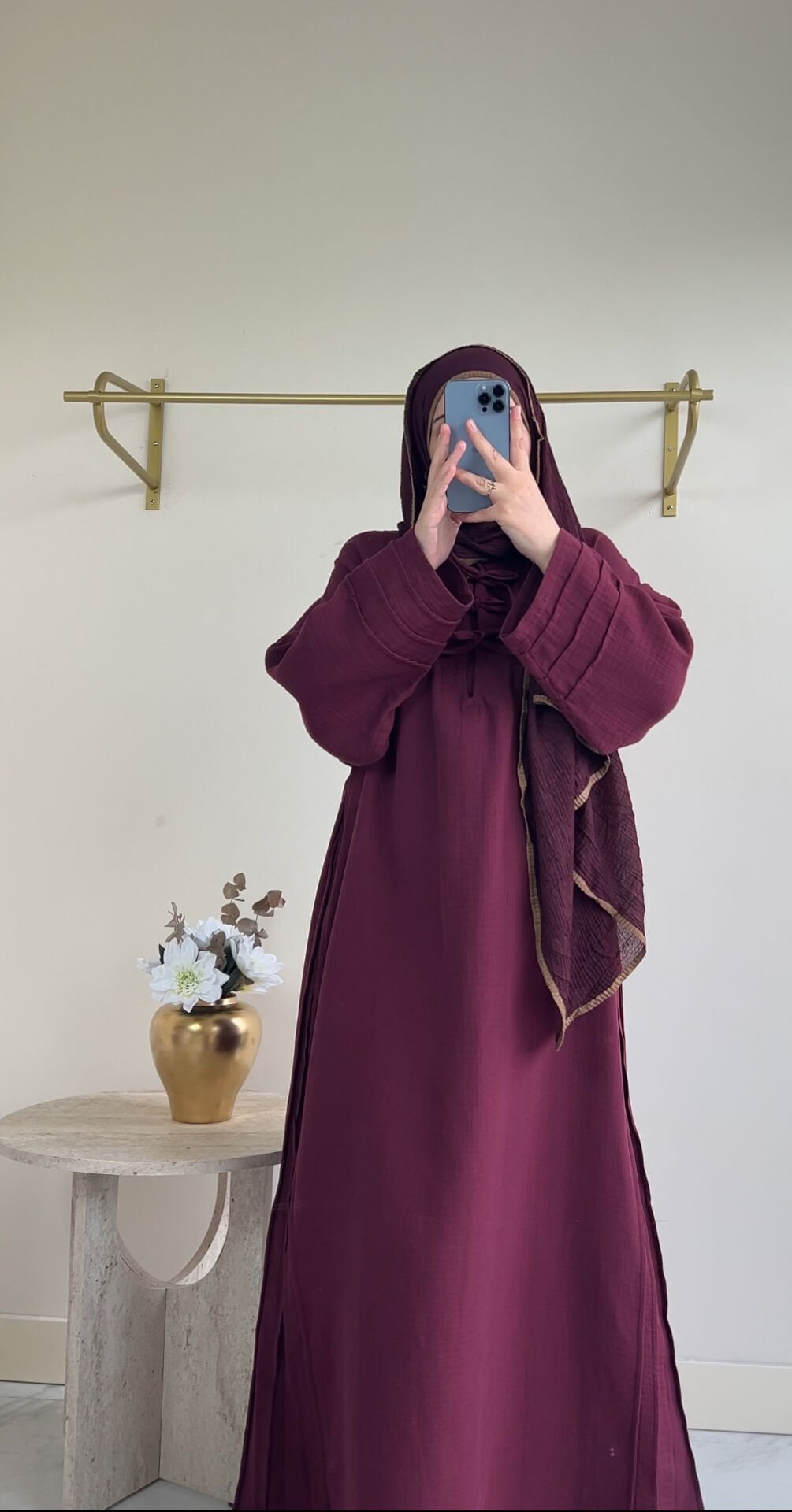 AVİN MÜSLİN ELBİSE BORDO ŞAL TAKIM