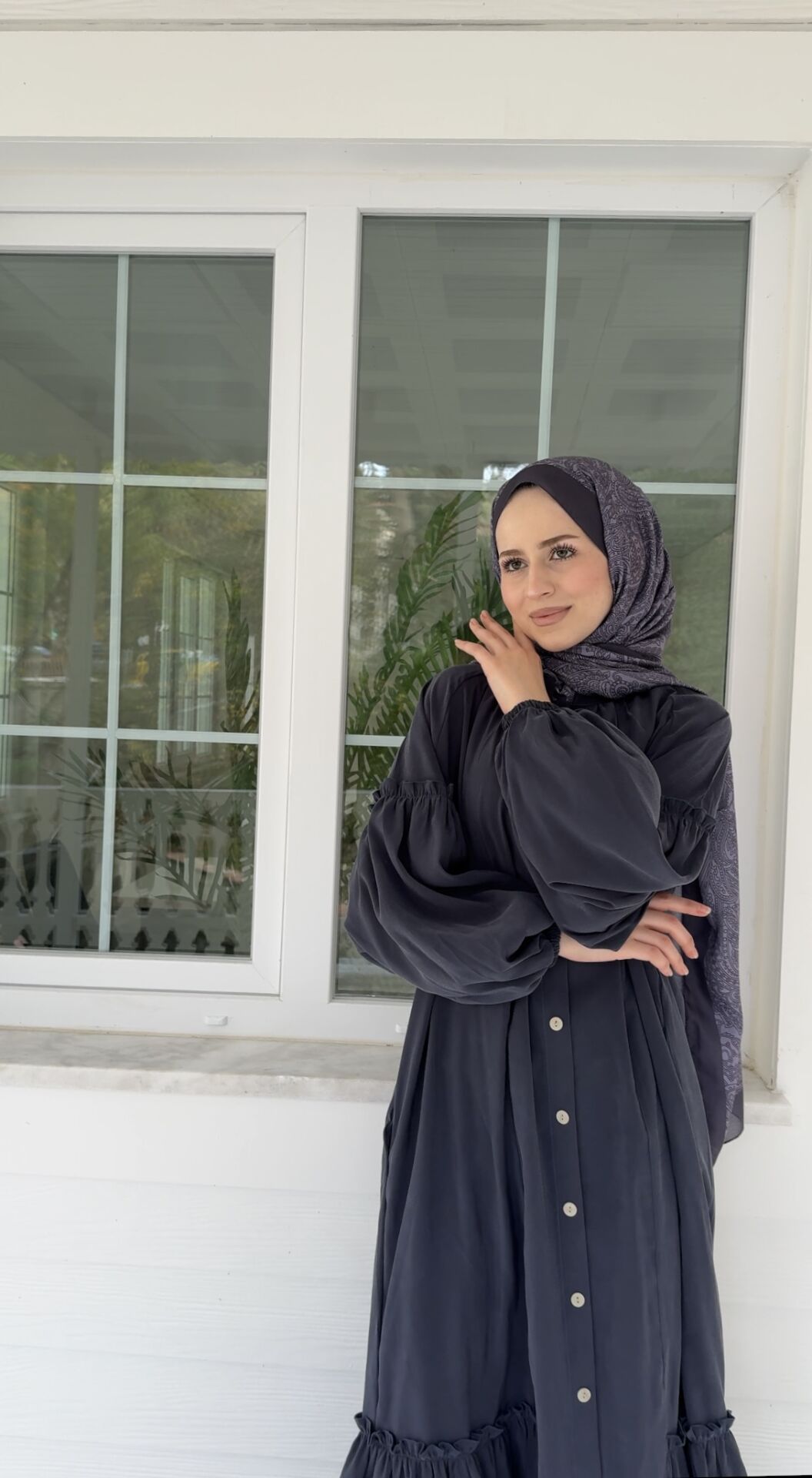 Yarım düğme detaylıdır,4.düğmeden sonra ön kısım birleşik olup ,düğmeler aksesuardır.